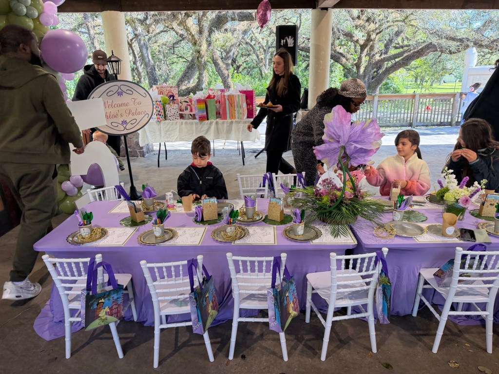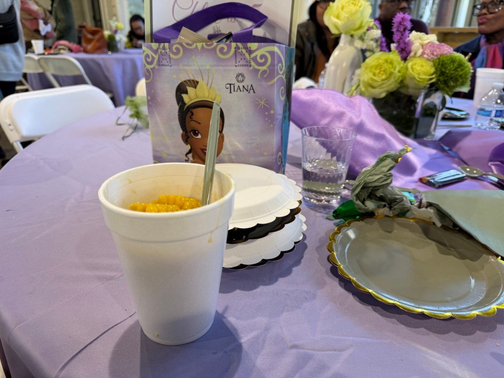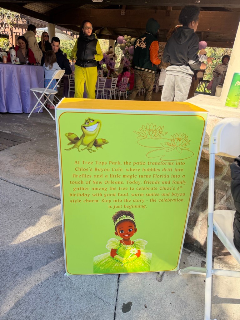 Chloe’s Bayou Cafe was beautifully planned and executed. Tiffany sourced a gown and hired a Princess Tiana to make an appearance. All of children, especially the girls were enamored. I imagine it to be like meeting Beyoncé.