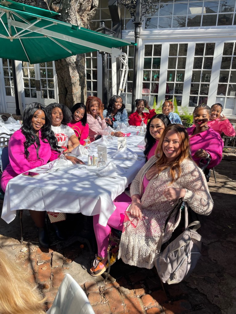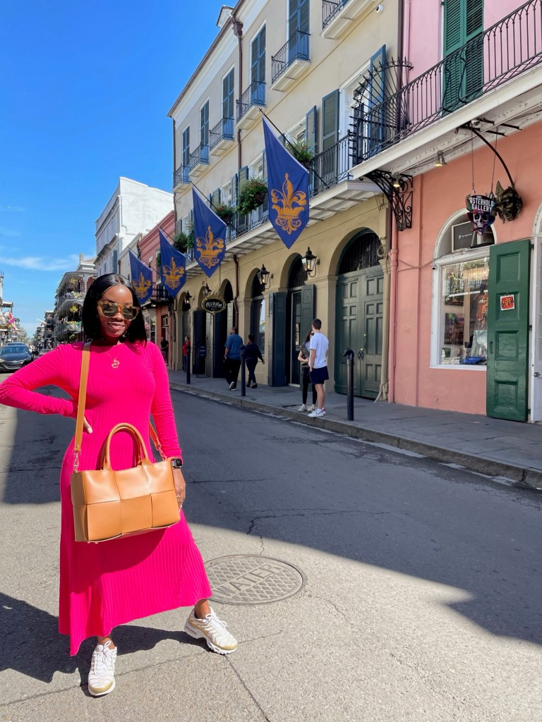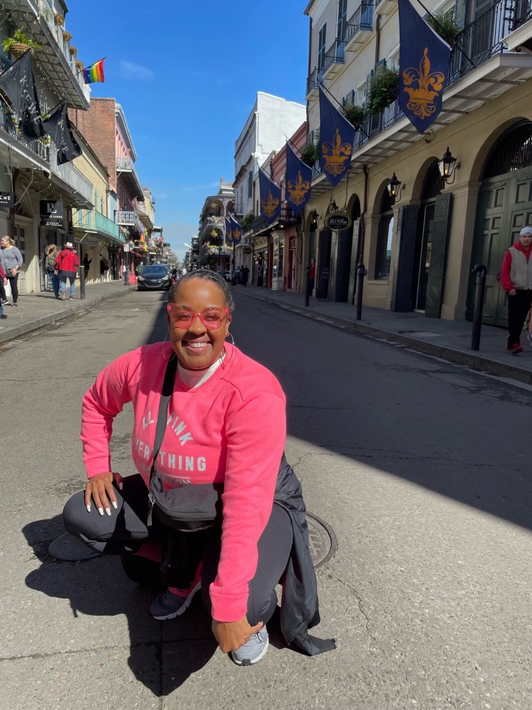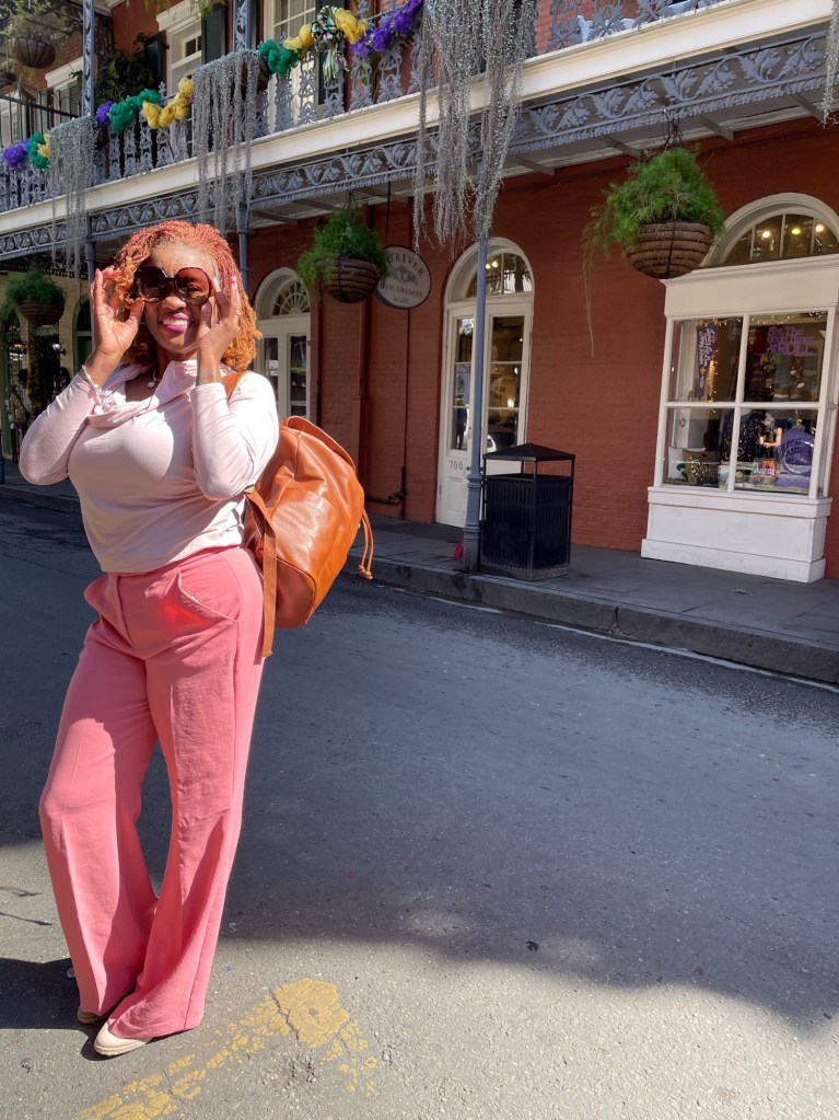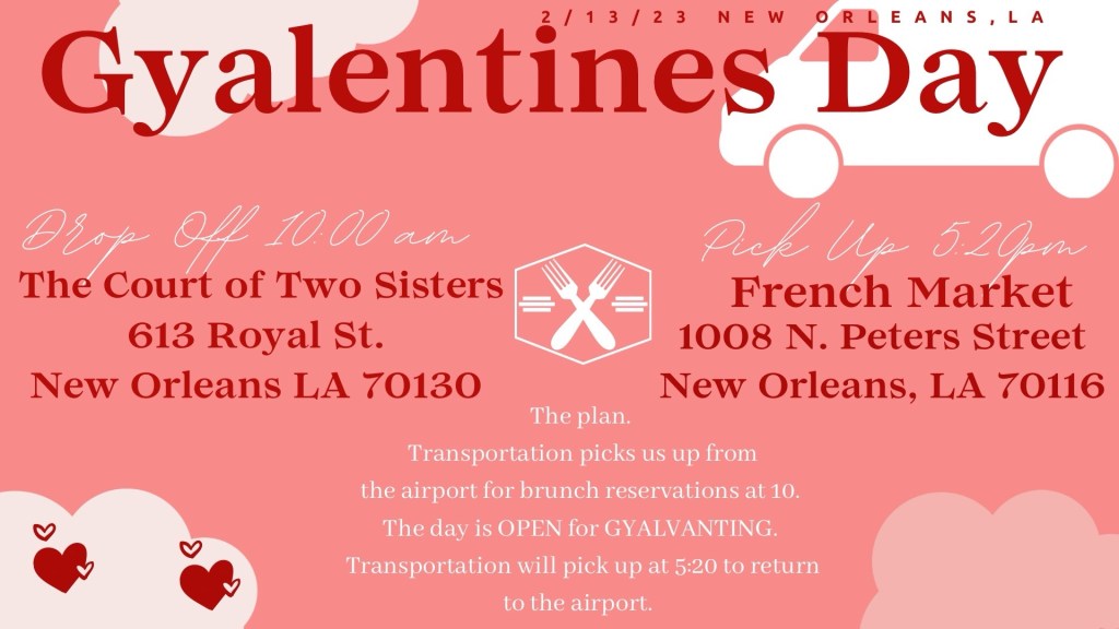 The day of our adventure arrived, and excitement filled the air as we boarded the plane. Dressed in accents of red or pink, we were ready to take on whatever New Orleans had in store for us.